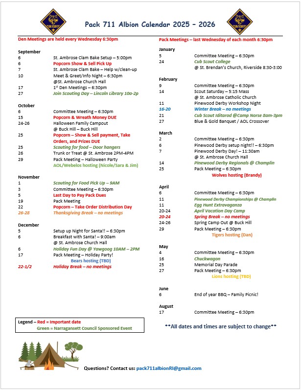 Yearly Calendar of Events Pack 711 Albion Calendar 2025-2026 Share this: Click to share on X (Opens in new window) X Click to share on Facebook (Opens in new window) Facebook Like Loading...
